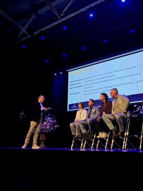 Eén van de sprekers was oud-commando speciale operaties Dai Carter, die inging op weerbaarheid en ondernemerschap: ‘Durf de verantwoordelijkheid te nemen om anderen te helpen groeien. Als we dat doen, worden we allemaal sterker.’ Daarnaast bespraken panelleden Carolien Nijhuis, eigenaar Nijhuis Group en voorzitter VNO-NCW Achterhoek, Bas Hommelink, directeur WAM&VanDurenBouw, Frits Mulder, directeur Rabobank Noord- en Oost-Achterhoek, en kwartiermaker MKB-dienstverlening Rob Schouten hoe samenwerking en dienstverlening de regionale weerbaarheid kan versterken.